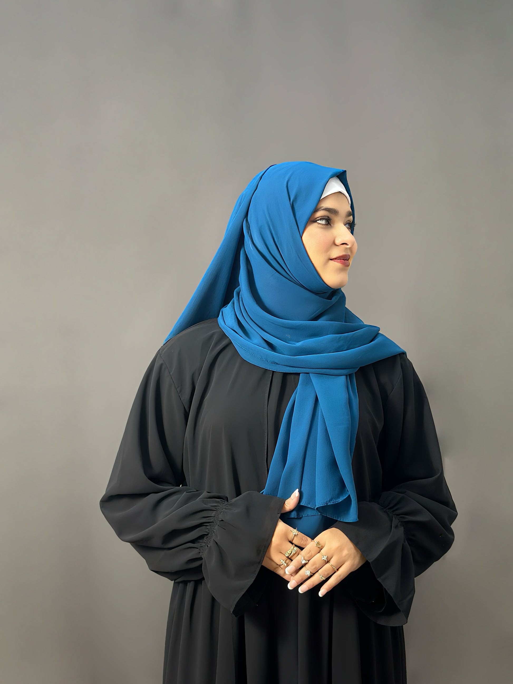 Lightweight and airy, this chiffon hijab drapes beautifully and offers a sleek, elegant look. Perfect for both casual wear and special occasions.