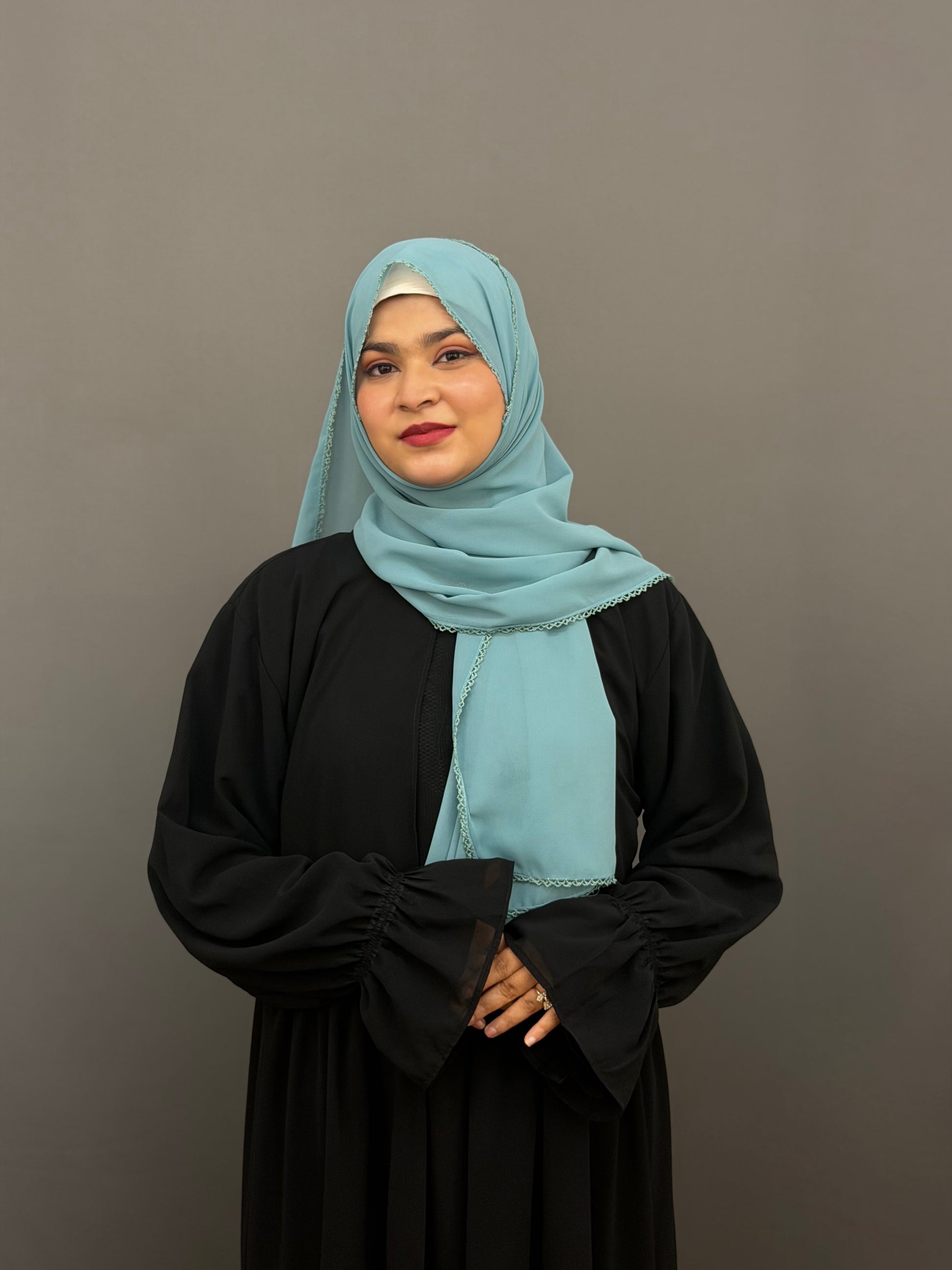 Grace meets detail in our Crochet Georgette Hijab, designed to add a soft, feminine touch to your modest look. Crafted from premium georgette fabric, it’s lightweight, flowy, and easy to drape, perfect for both everyday wear and special occasions. The delicate crochet border adds a hint of elegance and uniqueness, making every outfit look effortlessly chic.