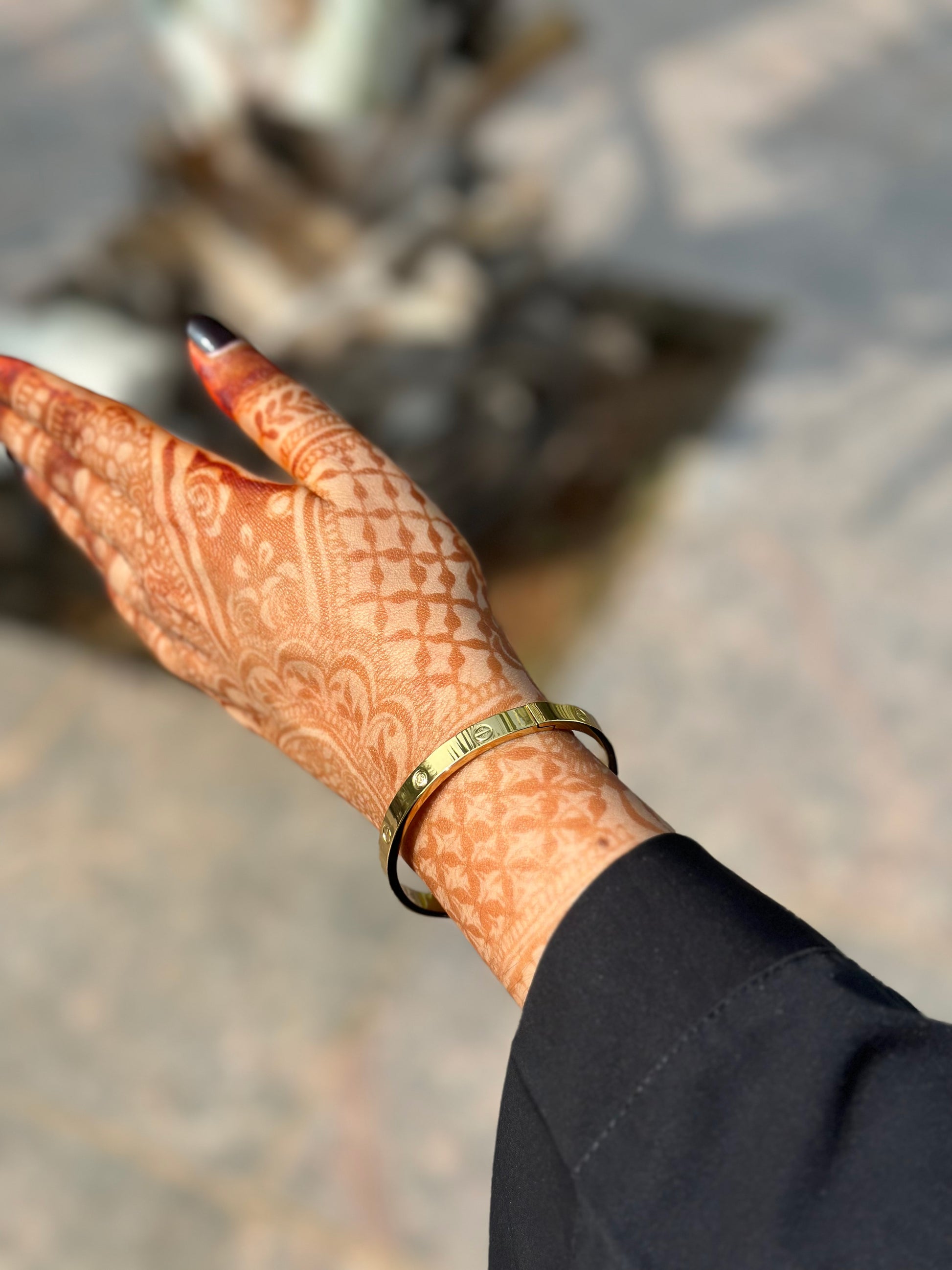 A stunning bangle adorned with sparkling crystals and a chic love design. Crafted with an anti-tarnish finish to maintain its shine, it comes in a free-size fit for effortless wear. Perfect for adding elegance to any occasion
