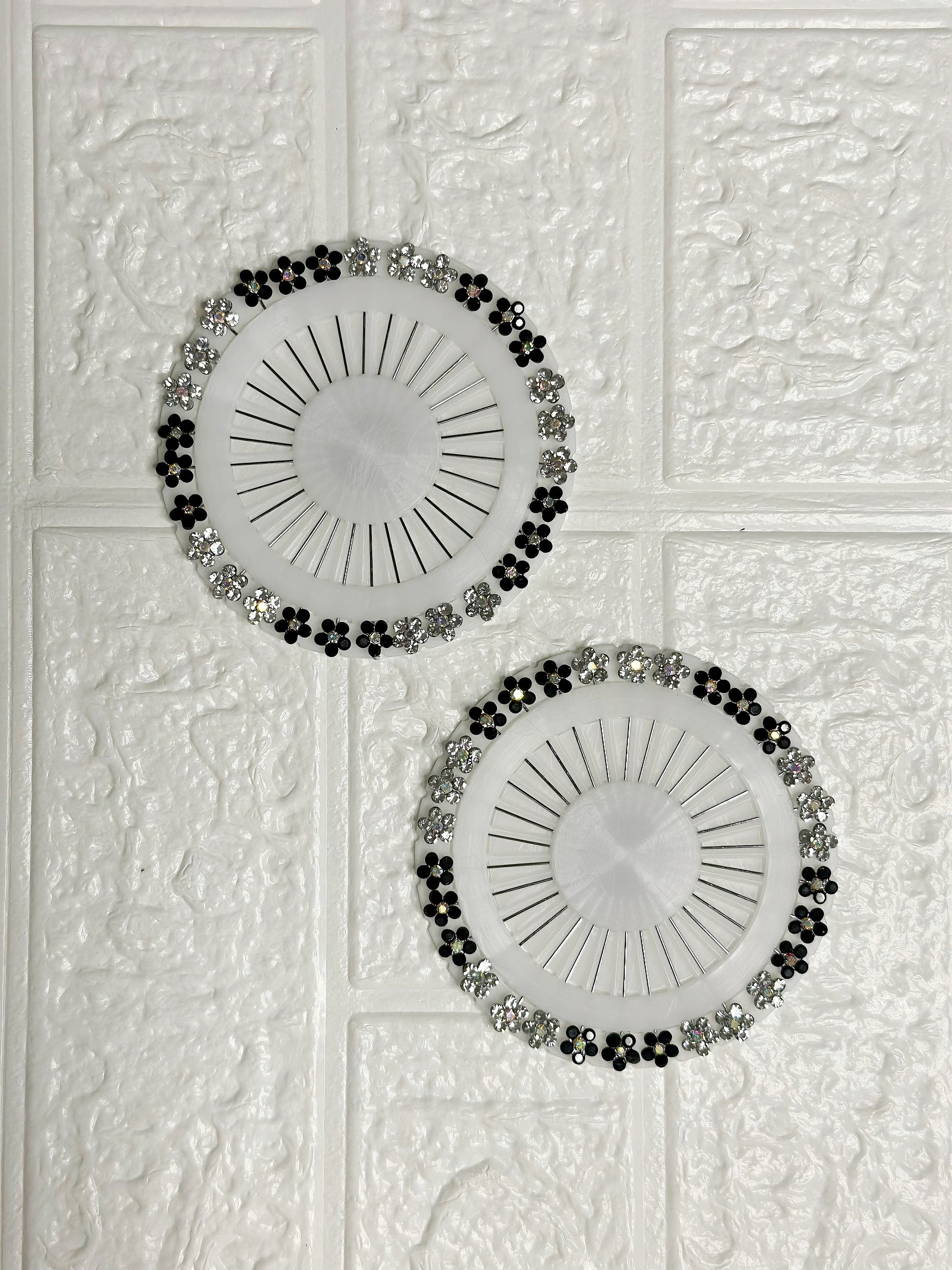 A handy wheel of 30 straight pins in classic black and white, finished with flower-shaped tops. Perfect for keeping your hijab secure while adding a subtle touch of charm.