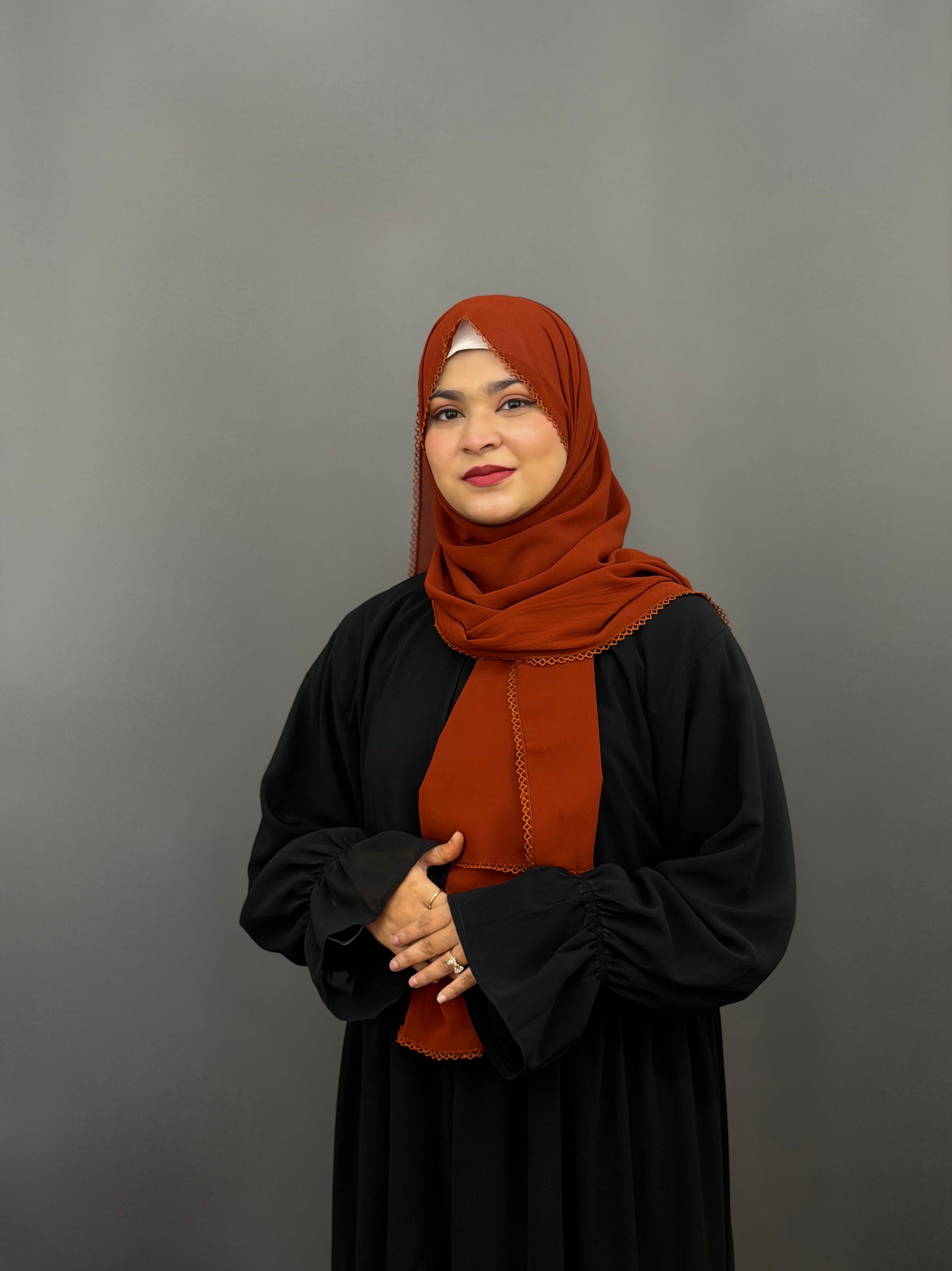 Grace meets detail in our Crochet Georgette Hijab, designed to add a soft, feminine touch to your modest look. Crafted from premium georgette fabric, it’s lightweight, flowy, and easy to drape, perfect for both everyday wear and special occasions. The delicate crochet border adds a hint of elegance and uniqueness, making every outfit look effortlessly chic.