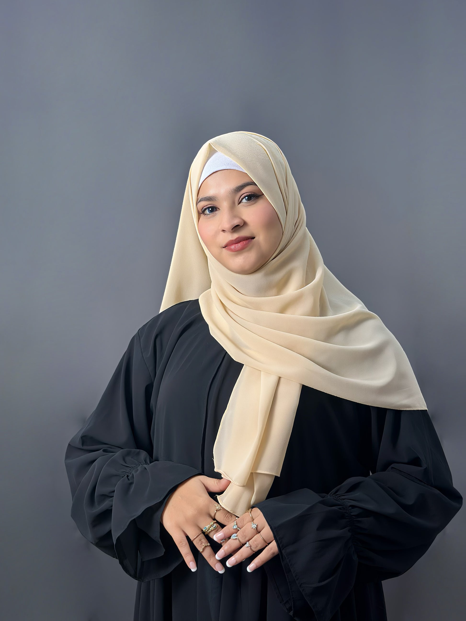 Made from premium-quality georgette, this hijab offers a soft drape with a smooth, lightweight feel. Elegant and versatile, it’s perfect for both everyday wear and special occasions.