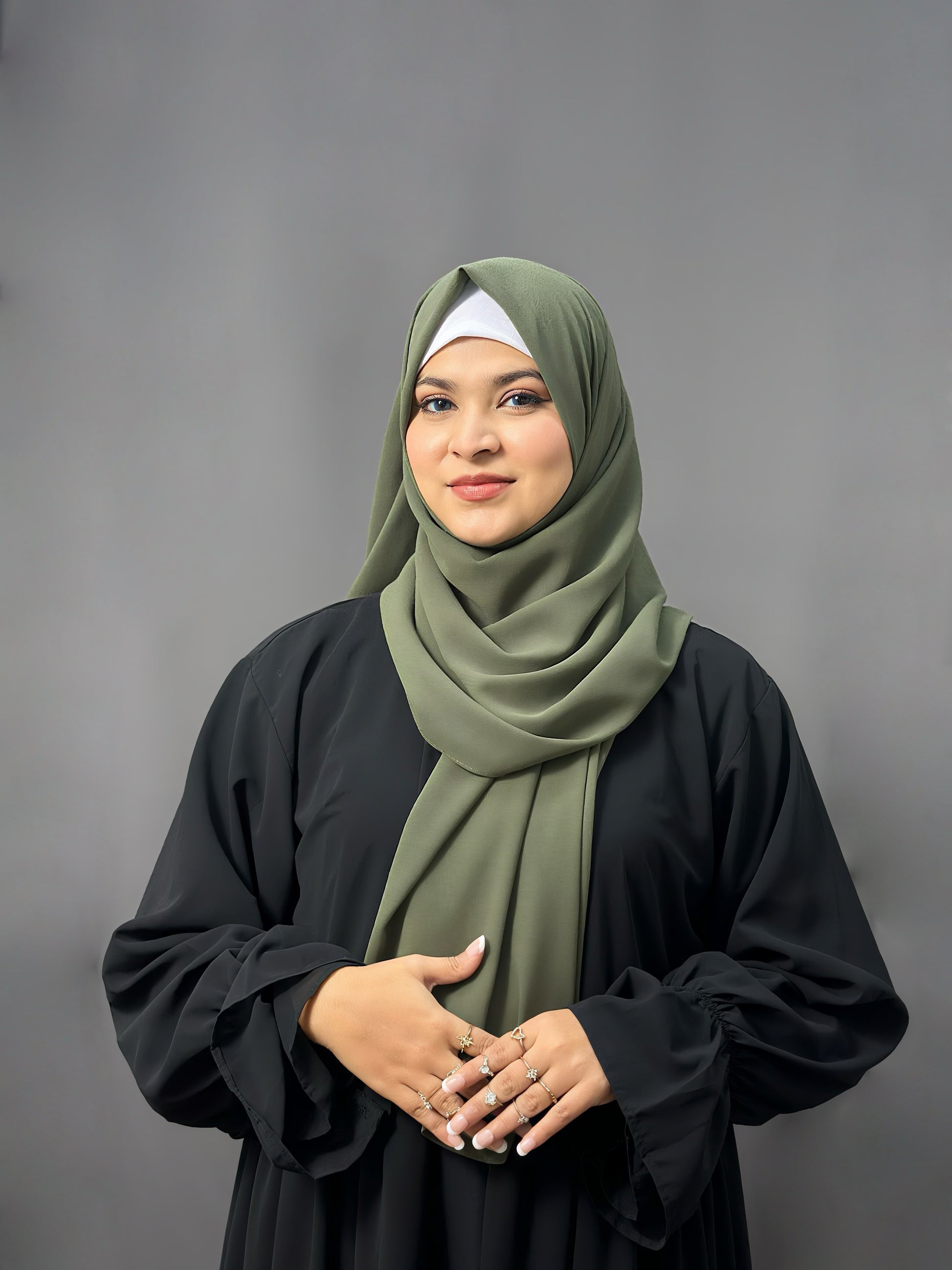 Made from premium-quality georgette, this hijab offers a soft drape with a smooth, lightweight feel. Elegant and versatile, it’s perfect for both everyday wear and special occasions.