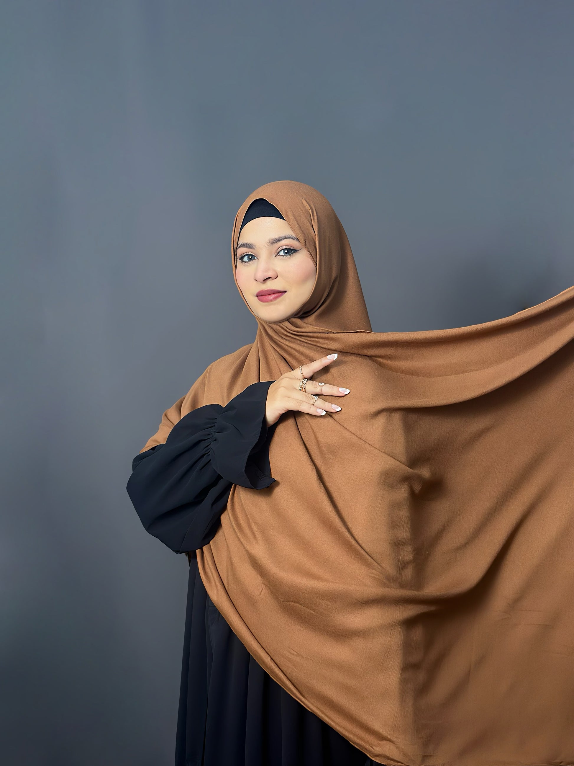 Soft and breathable, this modal viscose hijab combines comfort with a smooth, elegant drape. Perfect for everyday wear or layering for a polished look.