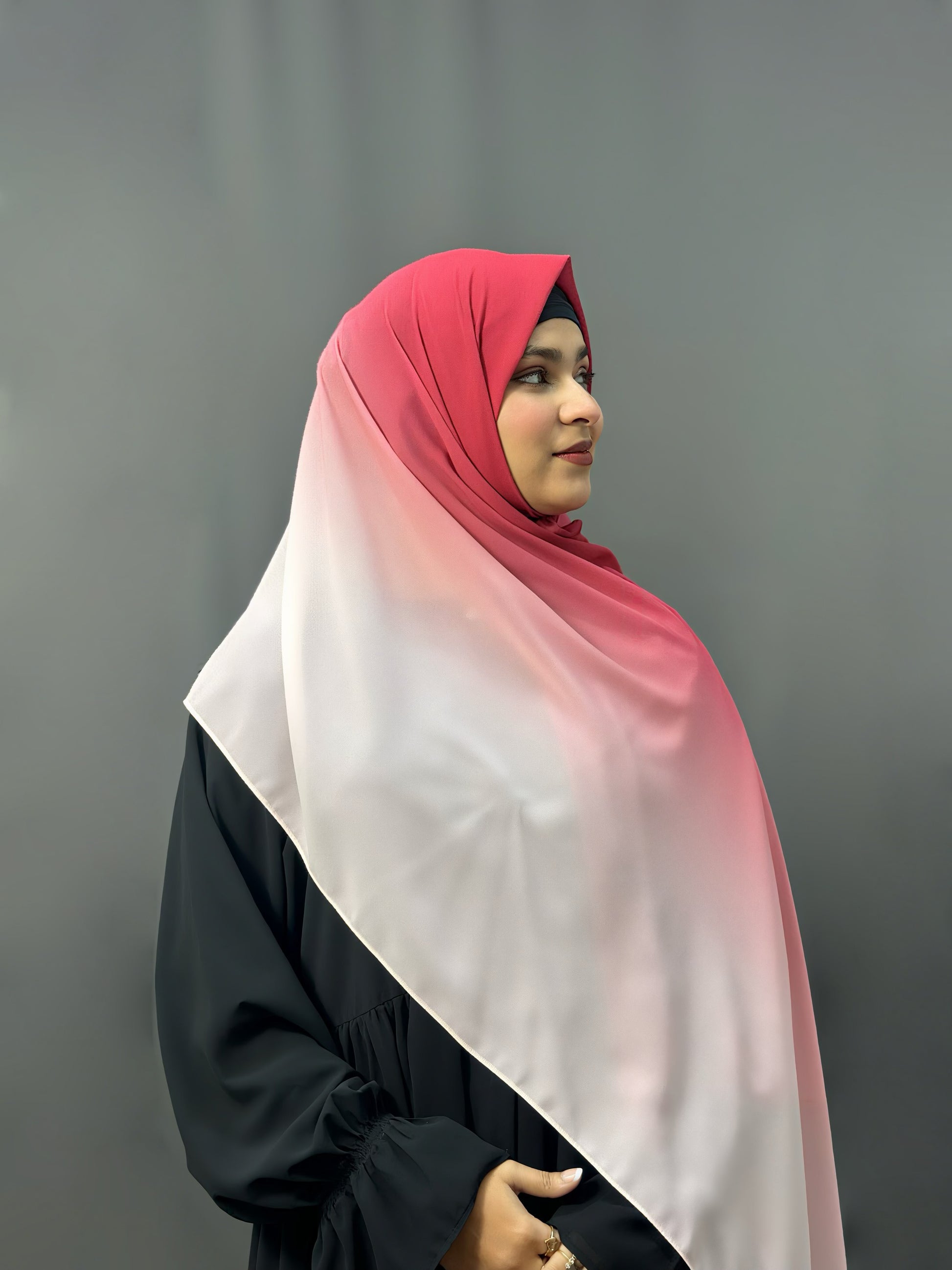Soft and lightweight, Ombre Georgette Hijab blends two harmonious shades for a graceful, flowing look. The premium georgette fabric drapes effortlessly and stays in place, making it perfect for both everyday wear and special occasions.